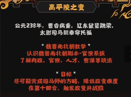 引子剧本《高平陵之变》主要就是为了让我们熟悉新的官僚系统,了解内政、国策、人才、密谋等玩法。