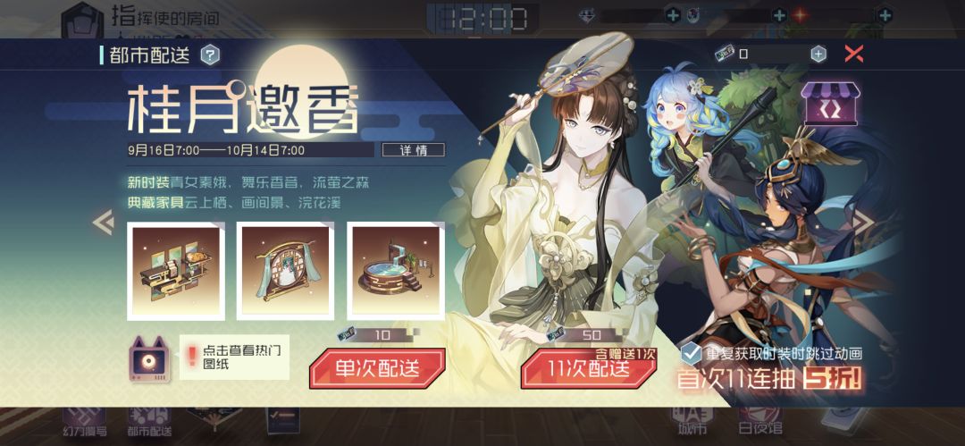 活动说明:本次配送活动中,单次配送每次消耗10张配送券·桂月,11连配送包含10次配送券·桂月配送以及1次赠送的配送,每次消耗100张配送券·桂月。