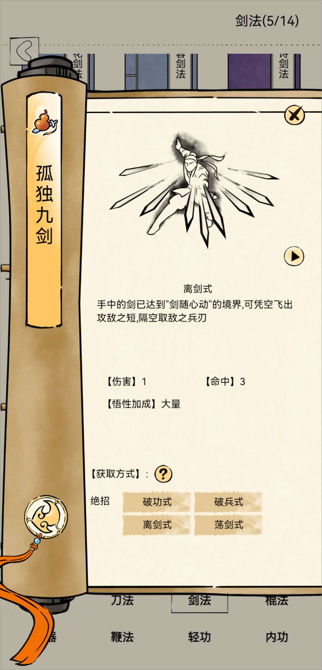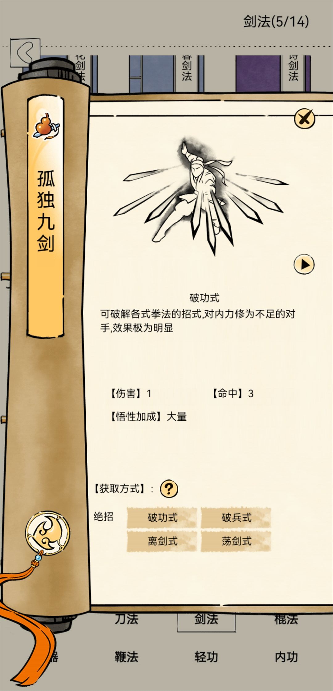 所以结合以上结论孤独九剑真的很弱真的不考虑出个领悟吗?如果你被九剑打败那么分以下几种可能