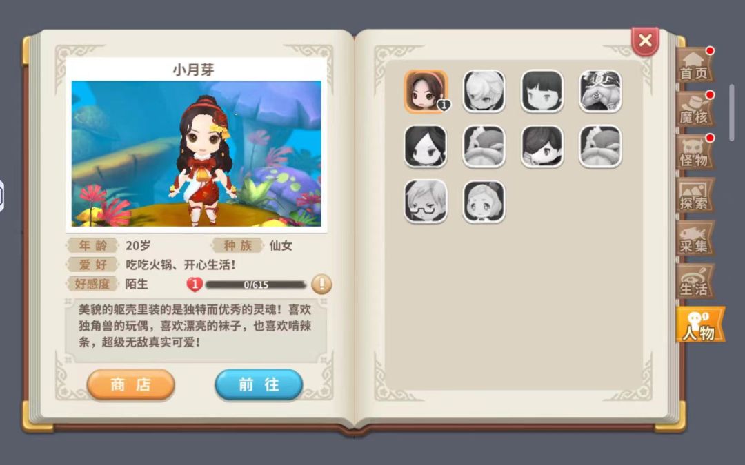 其他的四大手册也是异曲同工,而伙伴友好度则不同,在伙伴友好度中玩家可以随时查看自己已经收录的NPC,并且可以通过npc的商店进行一些特定资源的购买,而想要购买越高级的物品则需要越高的好感度。