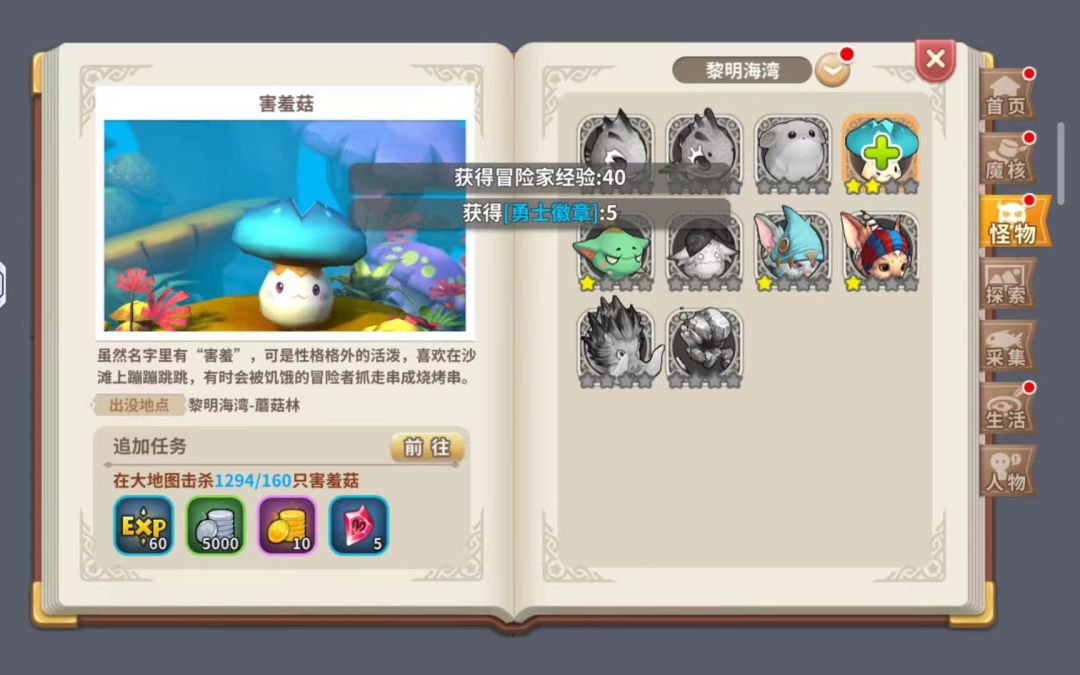 光明勇士手游手册有什么作用? 首先在手册界面中,我们可以看到分为六大项,分别是魔核手册,怪物手册,探索手册,采集手册,生活手册以及伙伴友好度。
