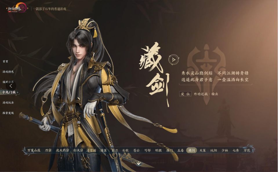 藏剑门派是一个输出门派,自带免控和减伤技能,他们擅长在战斗中切换心法,利用不同的武器和技能来进攻。