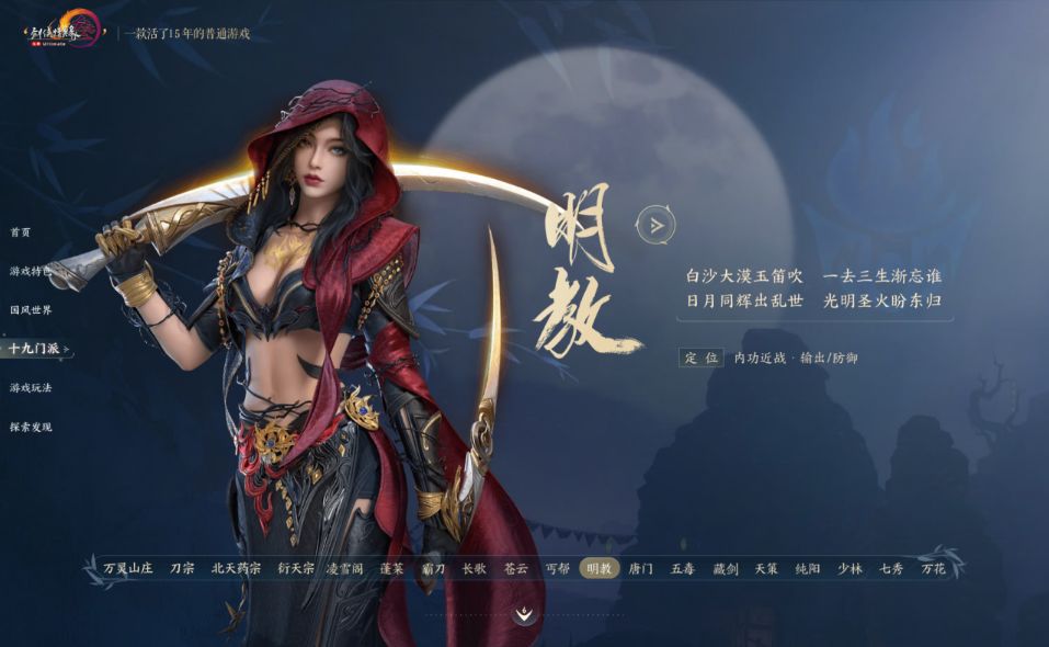 明教武学出招快、步伐飘忽、攻击迅速、位移能力强,闪避能力拉满。他们的一大特色就是可以在野外战斗的时候隐匿行踪,在战斗中占尽先手,PVP的时候非常强。