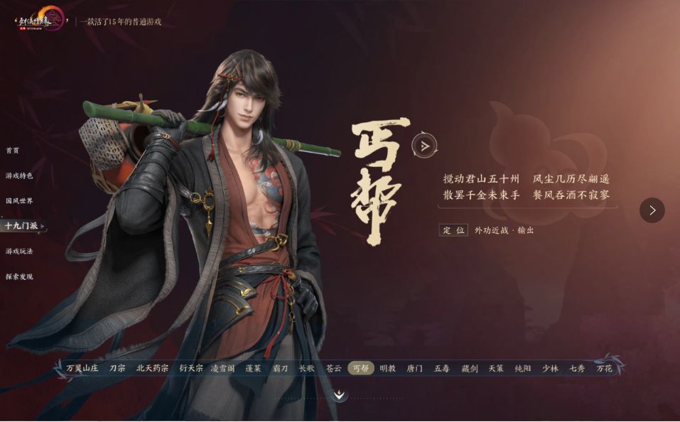 降龙十八掌和打狗棒法是这个门派的绝活。丐帮的招式单体伤害和控制能力非常强,只要想办法接近目标,就可以通过一套掌法打得对方毫无招架能力,打击感很强。适合喜欢在战斗中追求手感的玩家。