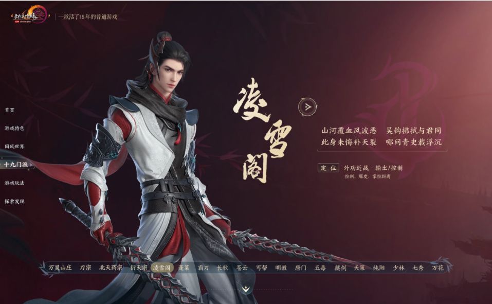 凌雪阁是由朝廷培养,从事刺探情报和暗杀的门派。在游戏中的主要定位是刺客,有着近战和远程两种输出模式,玩家根据不同的情况选择不同的武器进行战斗,相当灵活多变。