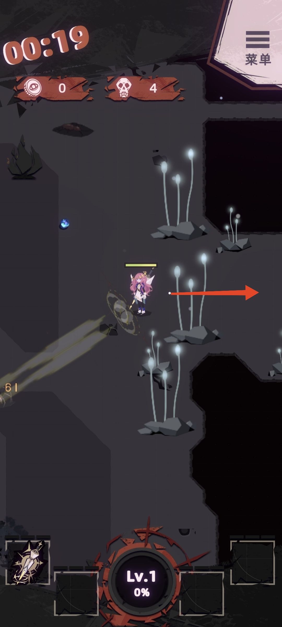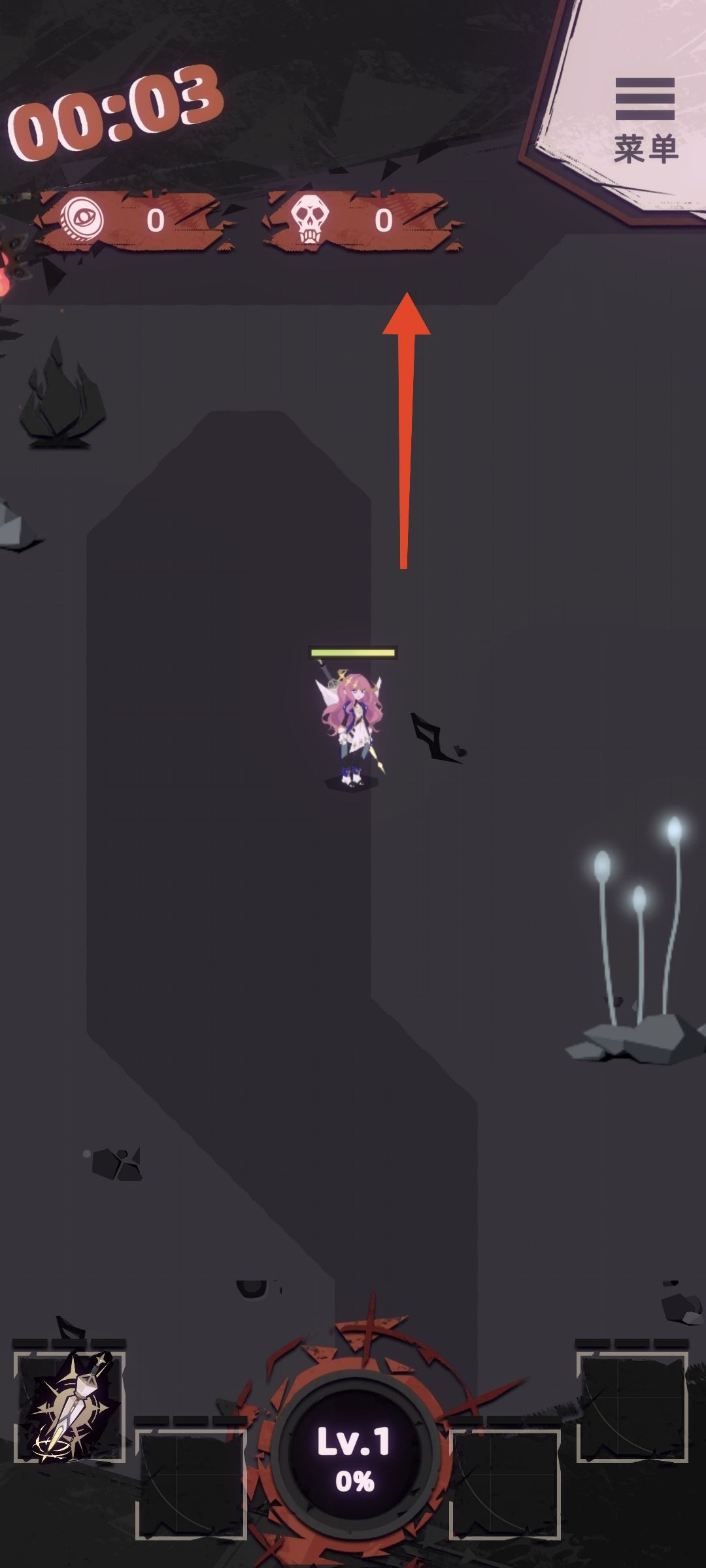 进入地图后朝箭头方向向上跑。