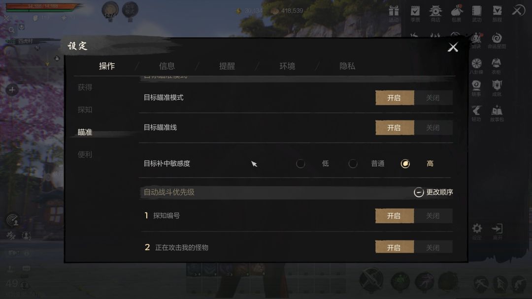 自动使用药品非常关键,《剑灵2》中有这个设定,自动省电选项对于升级来说也非常重要,时间越长放置的自动打怪时间越长,升级之路也更加省心。战斗设定也是非常关键的选项,设置-操作-便利中,战斗操作提供了三种方式,日常使用设置为简单就足以应对升级和部分副本,实现省心省力的畅玩体验。