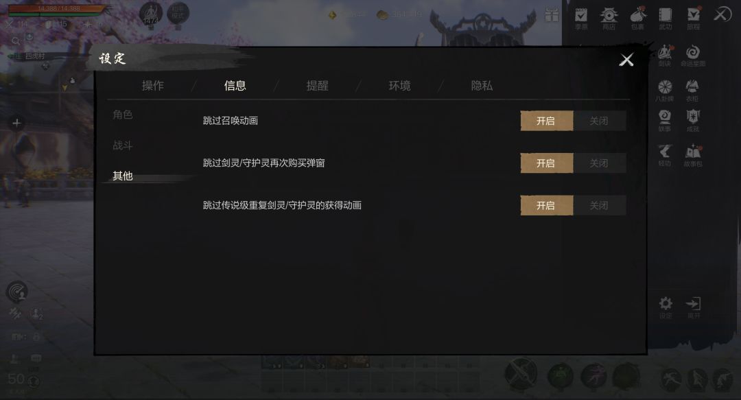 各种动画很烦人?统统关掉!除了可跳过动画,地图上的玩家昵称、怪物生命值、各种怪物详情都可进行自定义开关,系统设置内进行了大量的显示效果开关,只为还原一个更具有自定义清晰度的剑灵世界。