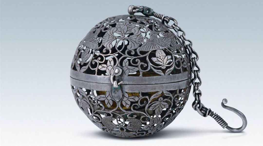 这件器物的神奇之处就在于:当使用香囊时,在它内部的金香盂中放置香料,无论香囊如何转动,里面的香料都不会洒落。
