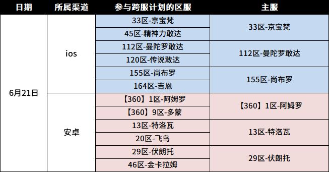 我们已于6月21日开启以下服务器数据互通。服务器数据互通后,原服务器入口依然保留,指挥官依然可以选择原服务器名进行登入。