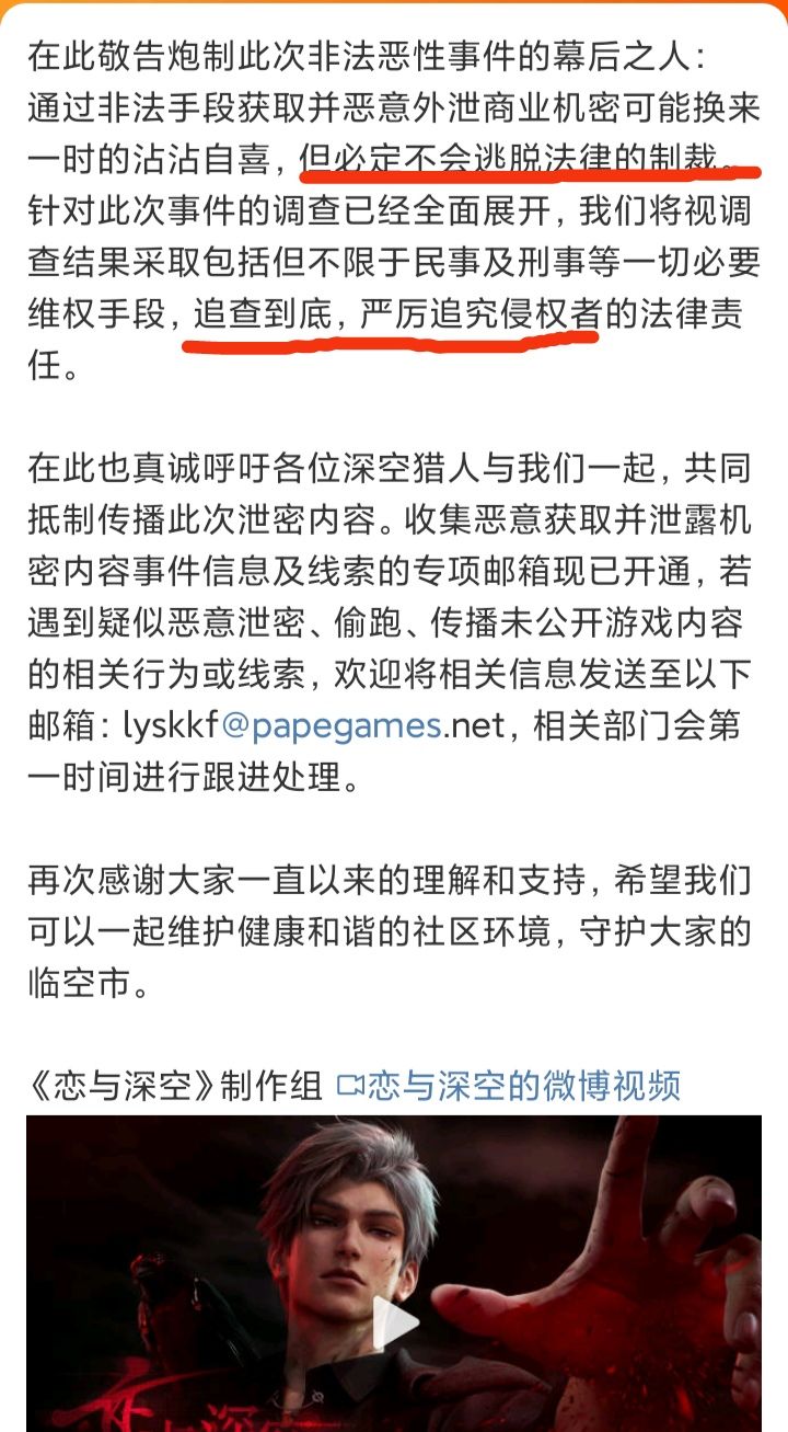 并宣布将全面调查此次泄密事件,追查到底,严厉追究侵权者的法律责任。