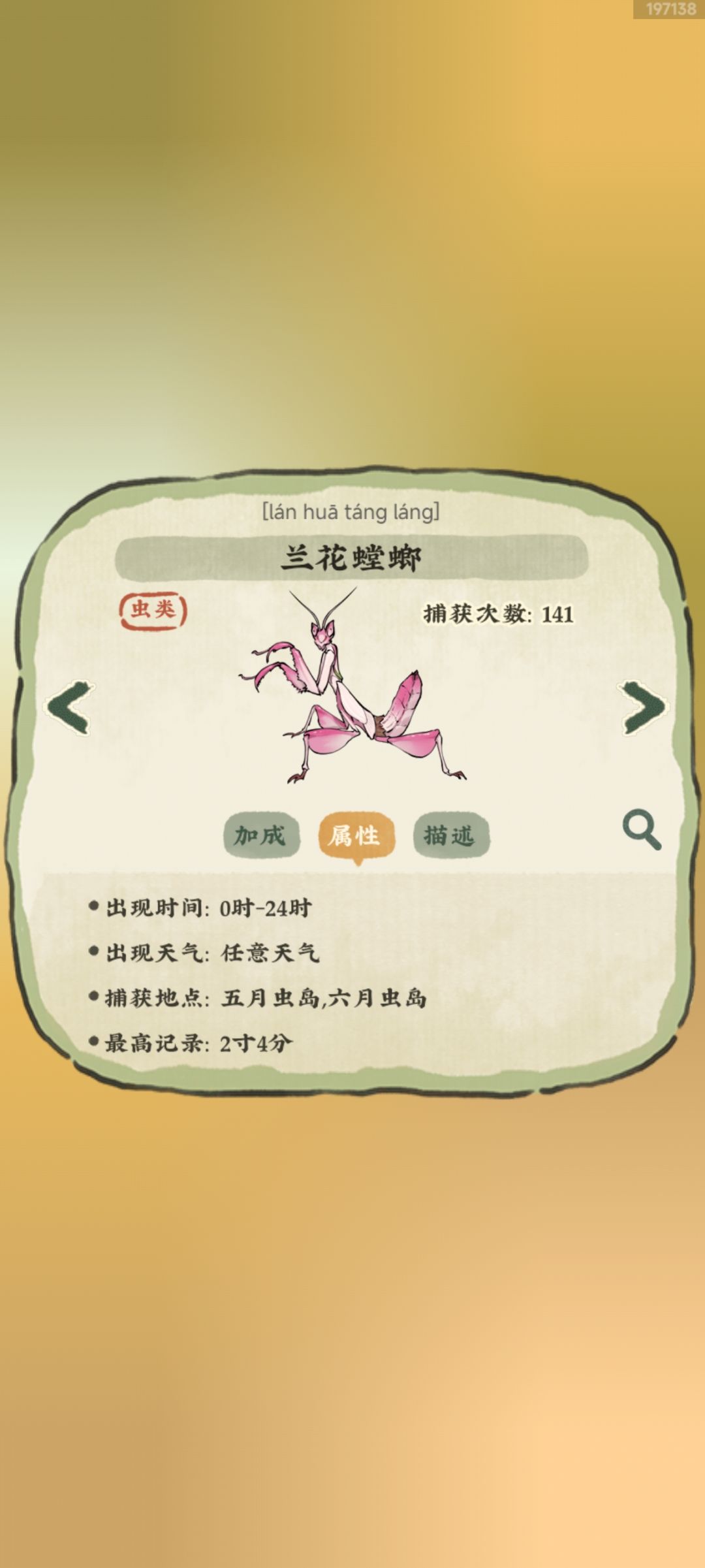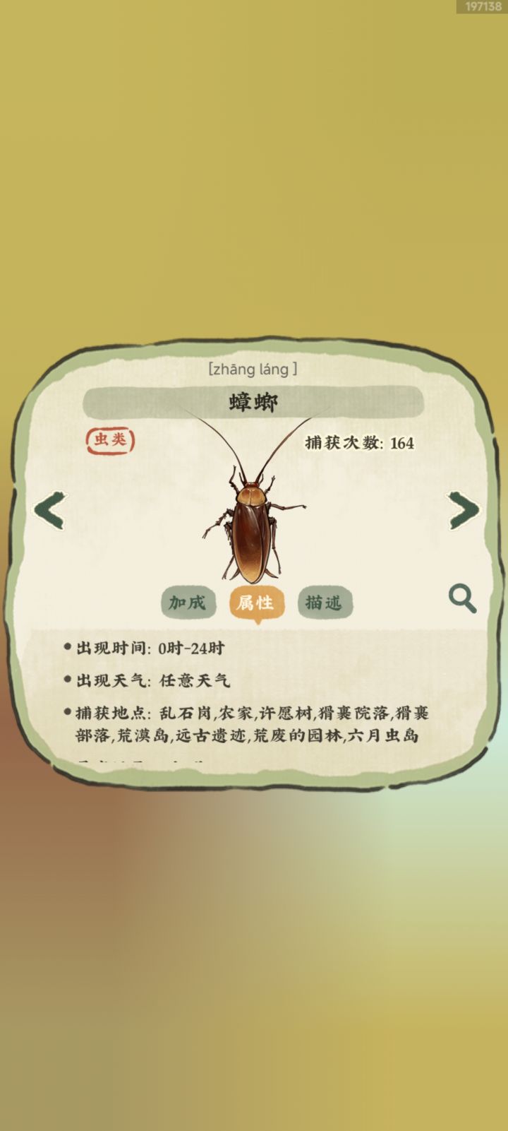 建议推荐抓虫岛屿,五月,六月虫岛,其实5月虫岛抓的要更舒服一点,六月嘛就蟑螂多是个优点