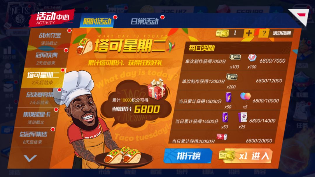 塔可星期二上线,新增气球奖励,可以用于【冠军庆典】活动!经理人们又可以和詹姆斯一起制作美味又健康的塔可,赢取丰富奖励!