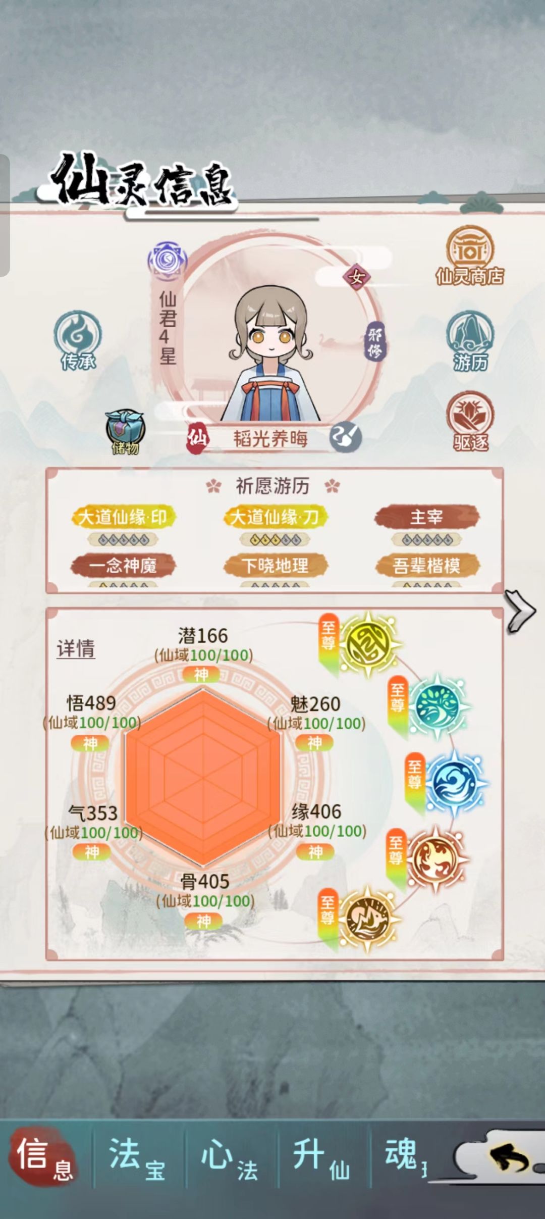 飞升先刷玄仙功法,悟性到290去刷仙君功法。刷到满属性满魂环为之。