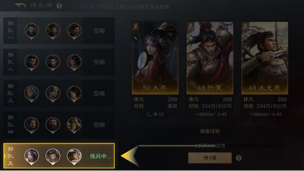 哪怕是暂时用不上的武将,也可以放入编队中,利用练兵所自动获取经验和升级。