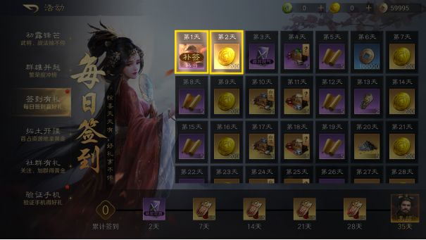 已错过的签到奖励可以持续补签领取,每日可补签一次,不用担心错过奖励!