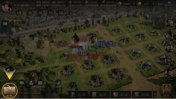 武将可以“扫荡”己方和盟友的土地,获得打地的经验,为武将练级。