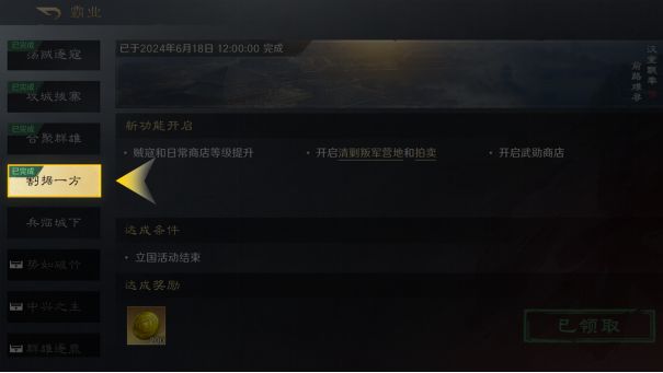 在“割据一方”霸业阶段开启前一天,可以先不完成讨伐贼寇。次数可以保留到第二天“割据一方”开启,等待贼寇等级提升后,再进行讨伐,以此获得更高的奖励。