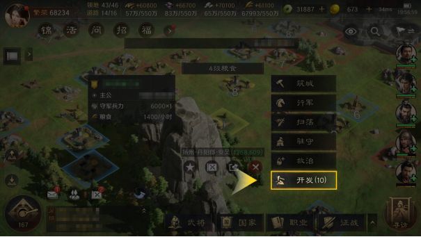 当城外高级地被占领完后,可以利用土地开发功能,提升低级地的等级和产量。占领对应等级土地后即可开发此领地。2、3级地可以开发为7级地,4、5级地可以开发为8级地,并且开发领地还需战胜相对应等级的土地守军。