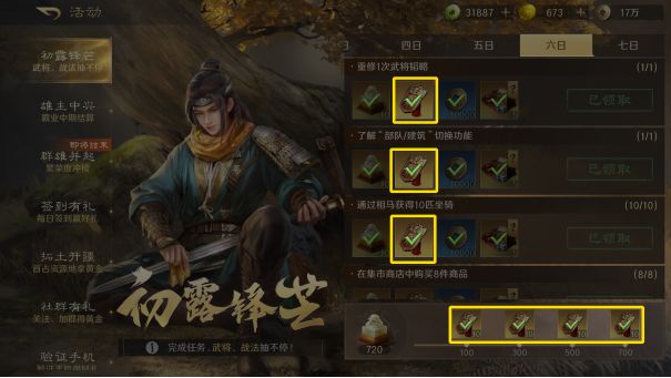 每天记得打满军演和远征的次数,尽可能的推进它们的章节进度,以获取大量的奖励。