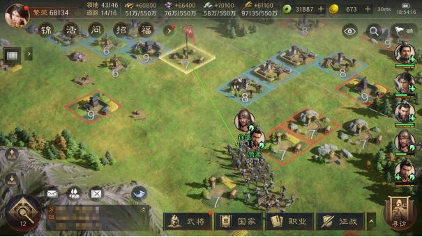 在资源州开关后,需要将资源的产量配比尽量侧重于粮草,保证征兵所能够快速征兵。拥有充足的预备兵就能保证我们持续战斗的能力。