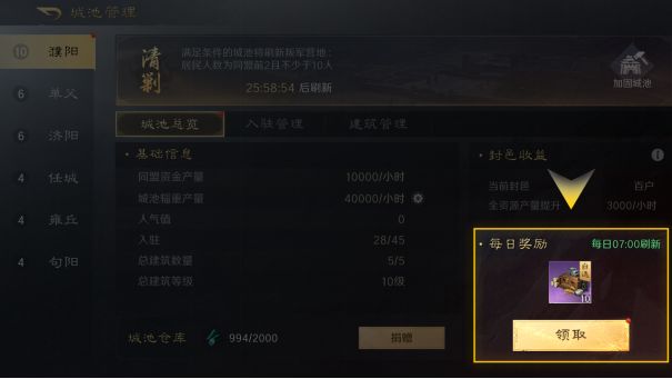 在同盟成功占领高级城池后,尽早迁城至高级城池周围成为城池居民,以获得更多的每日俸禄和更高的全资源产量。