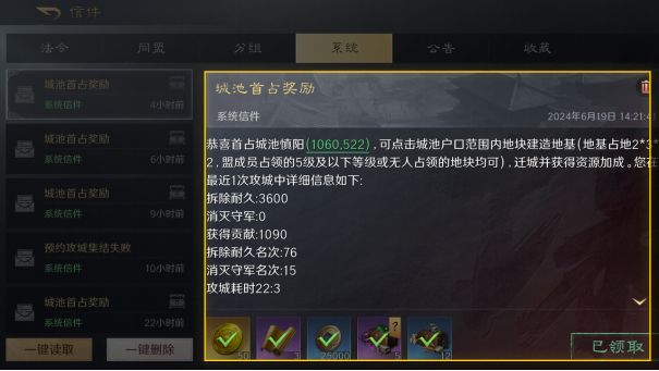 参与攻城活动不仅能获得丰厚的资源奖励,而且还能获得个人霸业积分。而个人霸业积分则决定着在赛季结束时的结算奖励,积分越高,奖励越好。