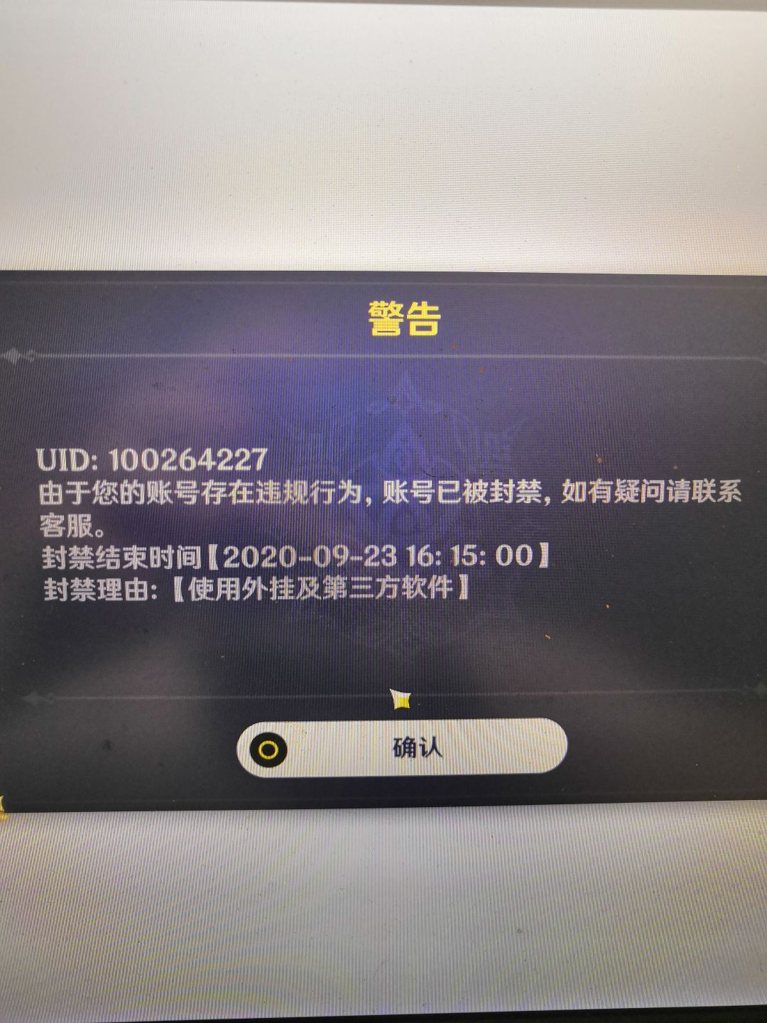 ????给我个理由?我开什么了?有毒吧这游戏还乱封号