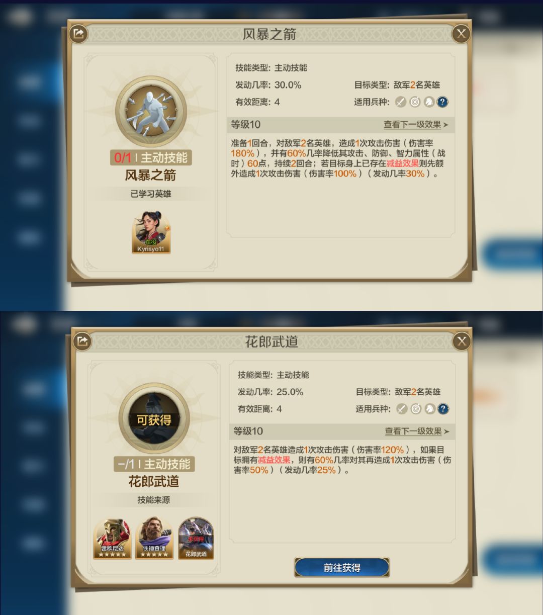 剩下两个技能推荐带【风暴之箭】+【花郎武道】。
