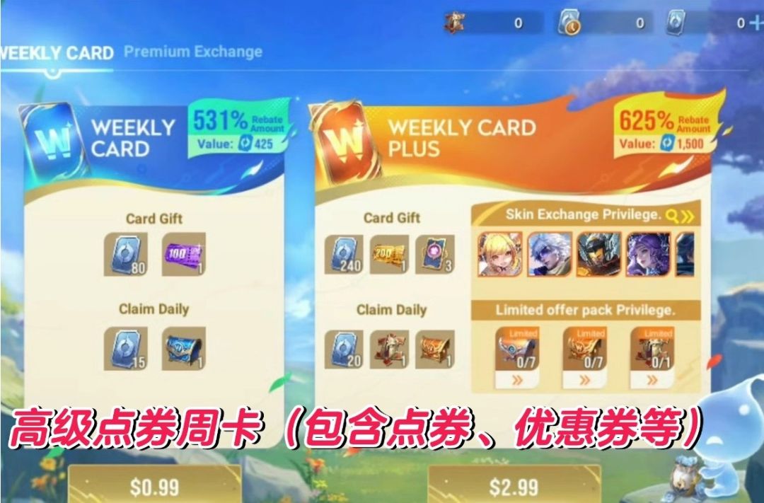 不仅仅是皮肤贬值,点券也会贬值,国际服上线了点券周卡月卡,0.99美元开通点券周卡,可以立即获得80点券,之后每天登录可以获得15点券,总共可以获得185点券,0.99美元换算下来也就是不到七块钱,能够获得价值18块的点券,可谓是非常划算。
