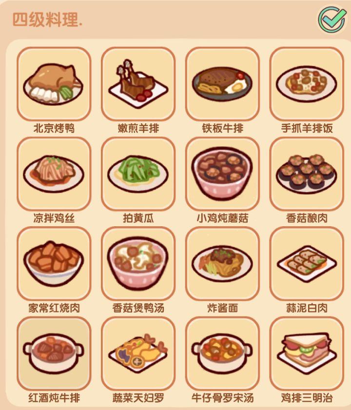 一到四级菜谱