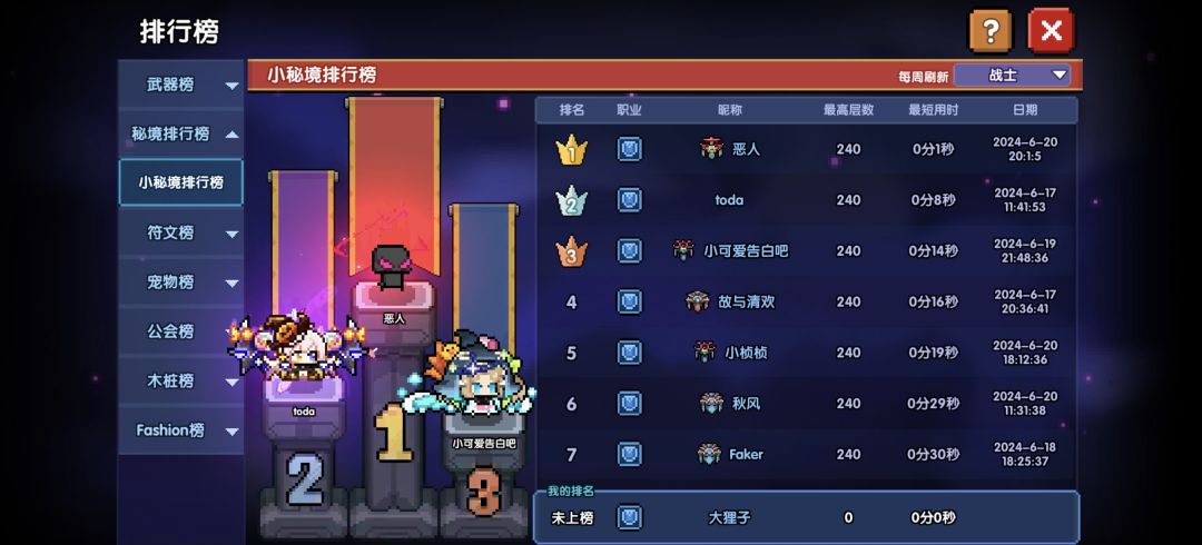今天翻小秘境通关时间,无意间就看到一个240层1秒就过的