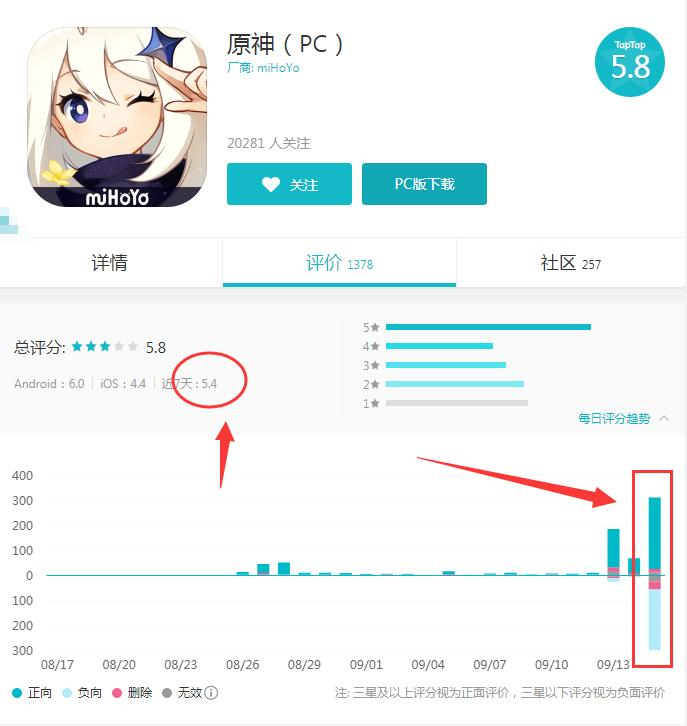 最近原神的PC端开测,不少喜欢二次元手游的玩家应该多少都有些关注或者甚至自己已经加入其中。从原神PC端开启之后,taptap上的评分可以看到,开测当天的口碑可以说是大幅度下降的,评分掉到了5.8。