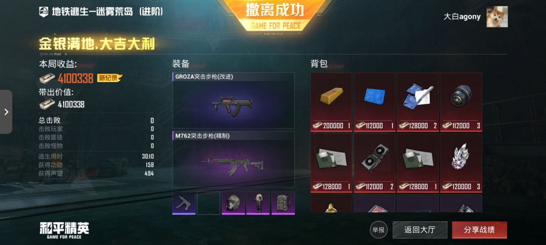 正常卧底进去是25分钟左右,这时候可以随便搜一搜,找一找甲,我这把很幸运3甲加3包开局,实在没甲没包就去找人机借一下,主要是借甲,然后躲着点人走。等20分钟去商店买板,图上标点的地方就是商店,里面可以买辐射板,这一把有人抢先我一步,买了这个商店的板子下去了,我跑到另一个商店去买了板,下去以后里面基本上打完了,没打完一定要稍微苟着点,因为别人六甲或者七甲,你过去拿个基础枪打他都不痛不痒的,这个打法说白了就是捡别人剩下的,像我这把还开了一个箱子捡了不少变卖物和俩套五级加精制狙。然后直接矿坑呼叫撤离就可以了,最后一张图是别人打完没板捡不了或者捡满了跑了的,我下来早了偷摸开了不少箱子,还贪了矿机,最后肥肥撤离#地铁逃生 #新手攻略 #游戏日常