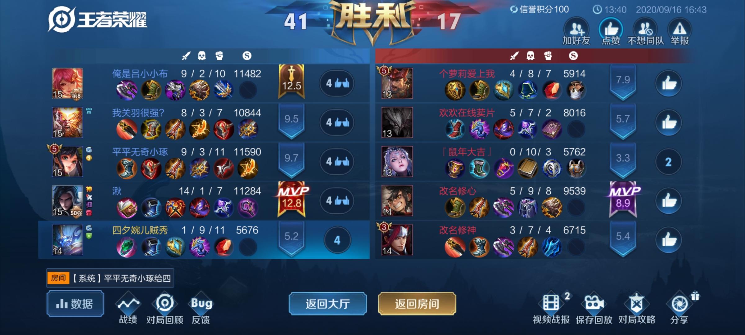 打完一看对面才发现居然有露娜这个英雄,还是0-10😂这个露娜竟该死的快乐。 还有就是这把我们家队友是真的秀,带飞我这个坑批,木兰那套重轻连招疯狂越塔击杀,猴子后跳疯狂骗技能,香香完全没有我的保护灵活走位,司马懿支援输出爆炸😂然后我就是个废物一直挨打,被顶上天就没下来过,对面疯了一样专门打我,说的就是韩信和廉颇,一直击飞我