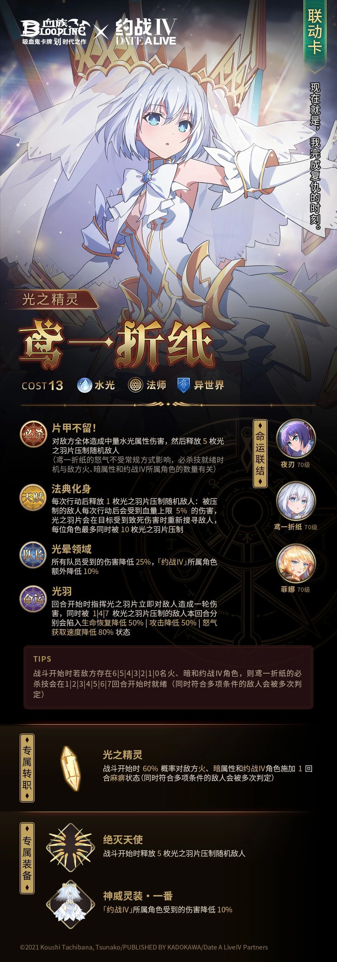 时之精灵,识别代号〈梦魇〉。最恶的精灵,拥有操纵时间的能力。在偶然现身于人间的众多精灵当中,是能够从邻界以自己的意志现身的特异存在,为达目的不择手段。谈吐间有种与众不同的贵气,偶尔也会展现出可爱或者色气的一面。