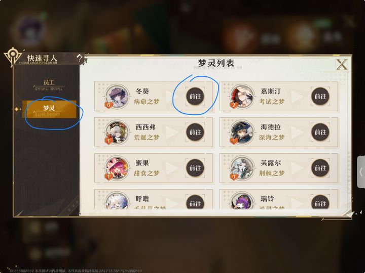 3.在梦灵分类里找到你想要提升好感的梦灵,点击前往