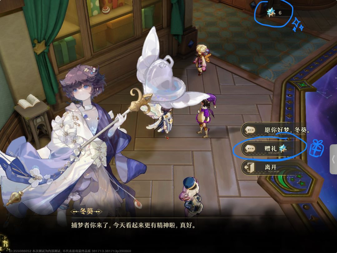 (目前内测是一个礼物一级,公测应该会修改)如果没有礼物可以点击右上角查看掉落礼物的副本