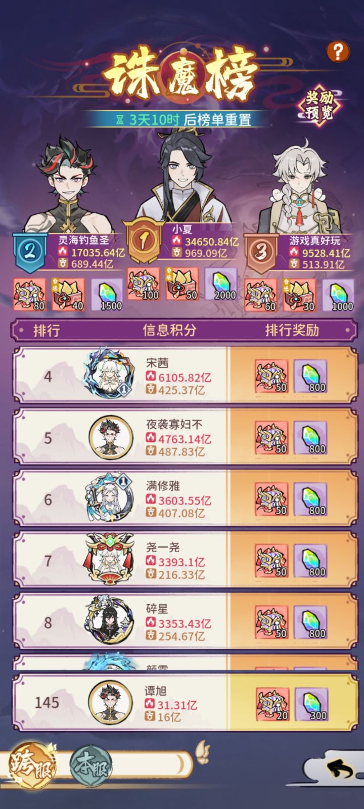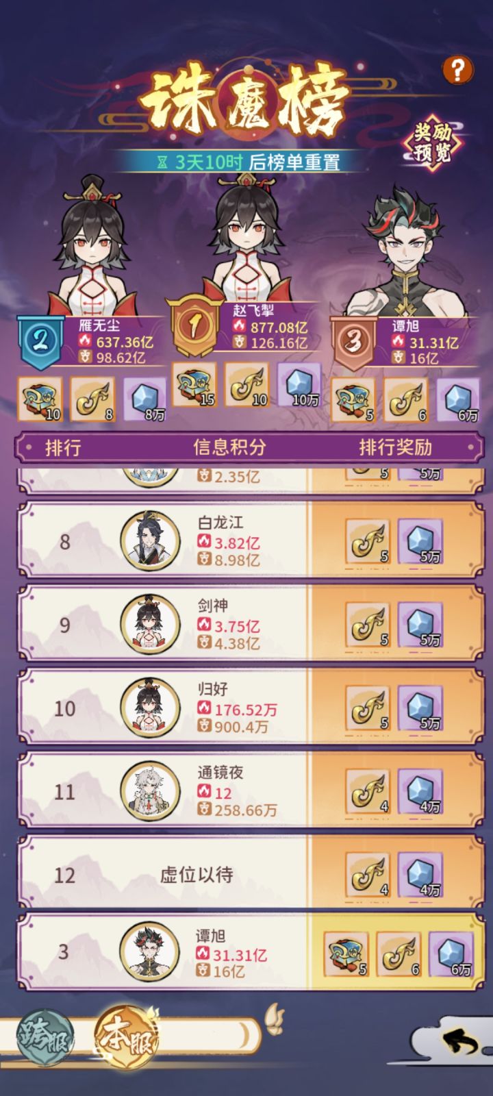 自上次攻略录很久没见了,这次来讲讲活动域外天魔,上次我域外天魔结束我留了点魔晶石,我一直在等第二次域外天魔,说真的这个域外天魔活动和上次间隔稍微有点长,当然进入后什么都没有所以建议魔晶石能换换。本人上次活动跨区三百多名本区十,能从这次活动能看出玩家的流失,对平民玩家来讲这是好事,只要你玩的久就能越来越厉害,这里要感谢各位氪金大佬对游戏的支持,飞升的神域还没更新,再次希望神域能快点出来。