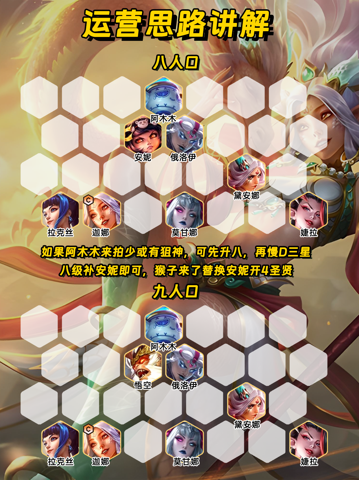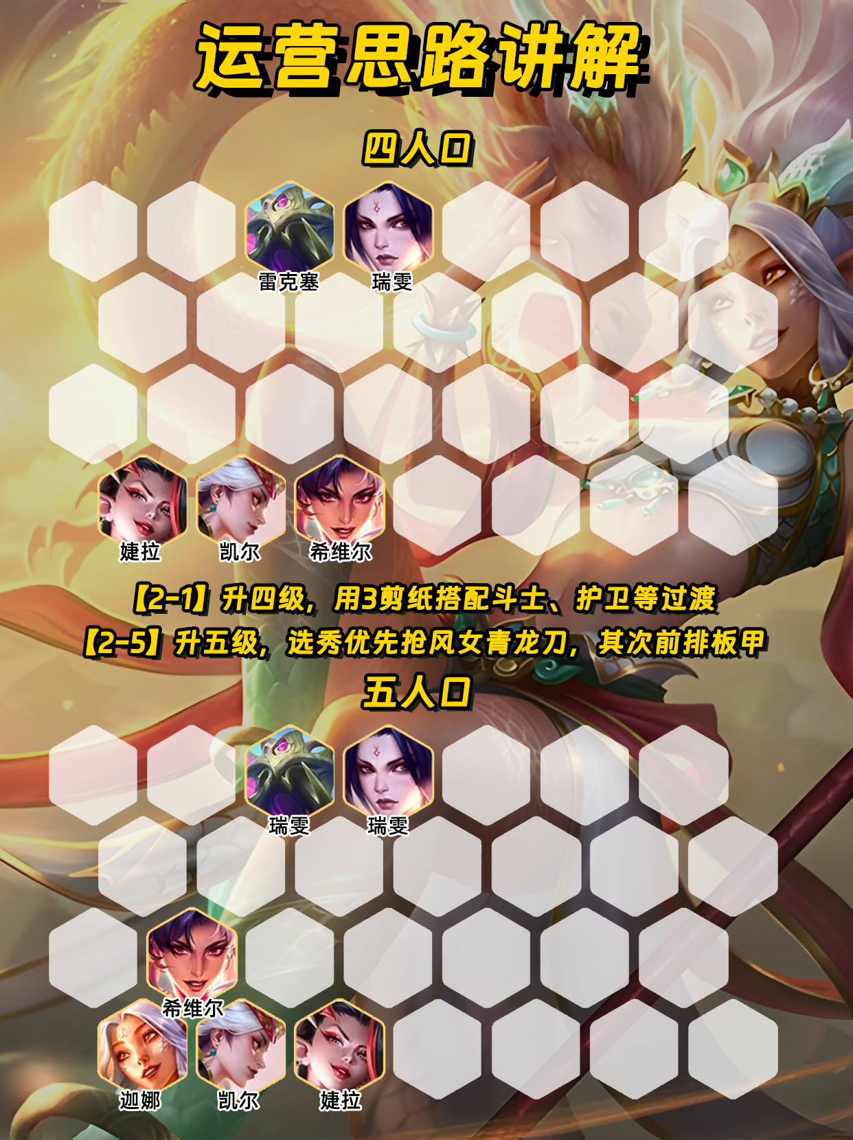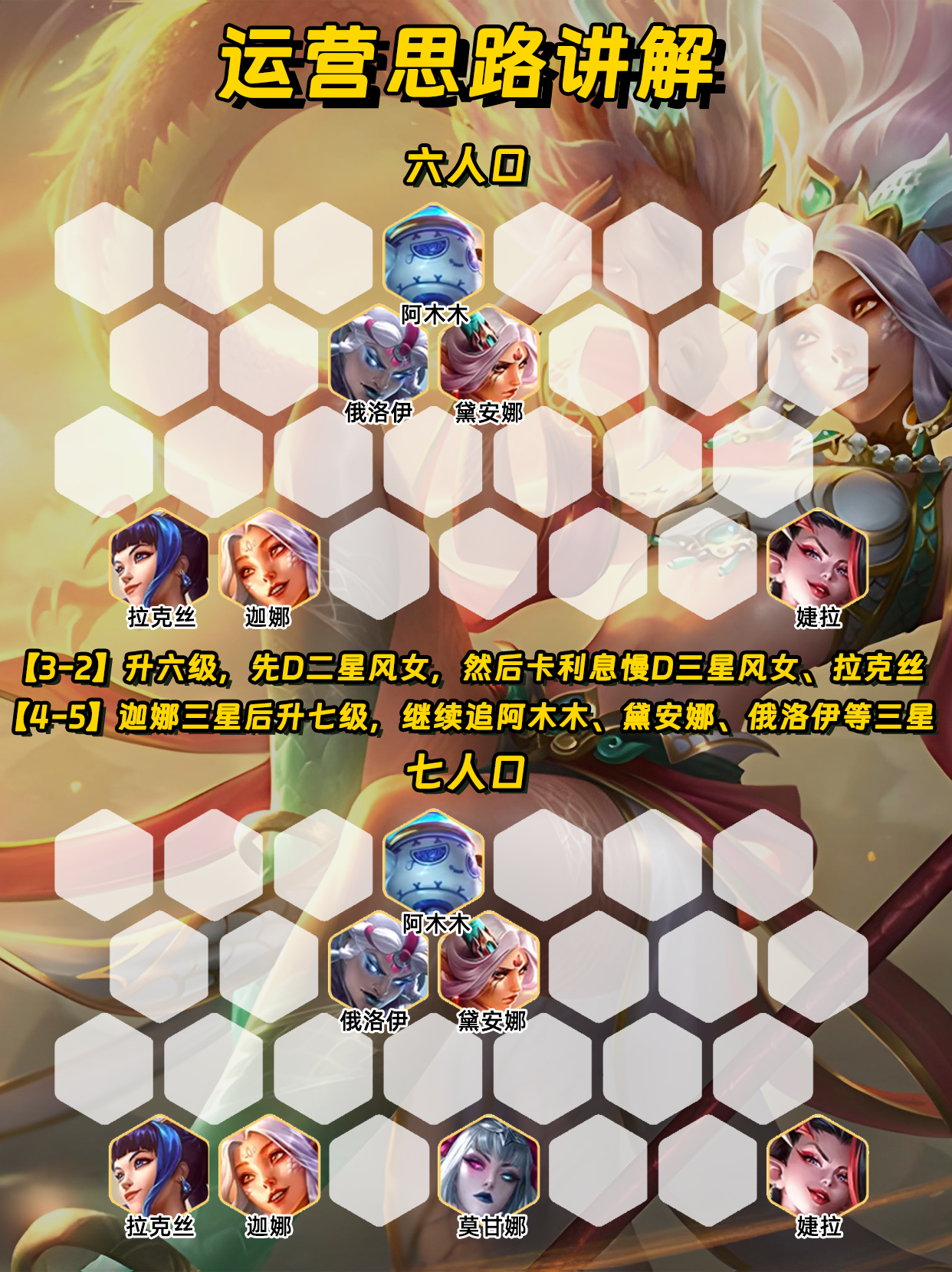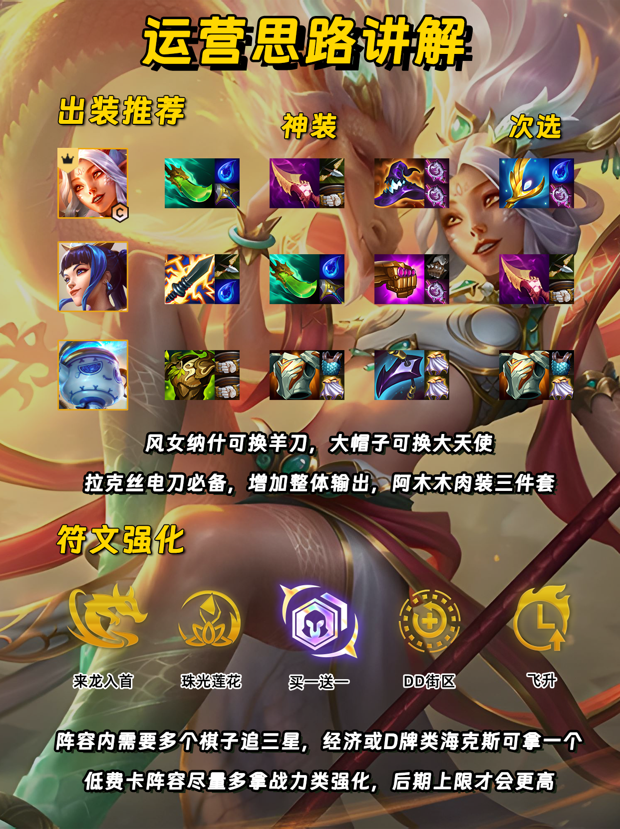 低费卡阵容后期较为乏力,上限取决于三星数量。