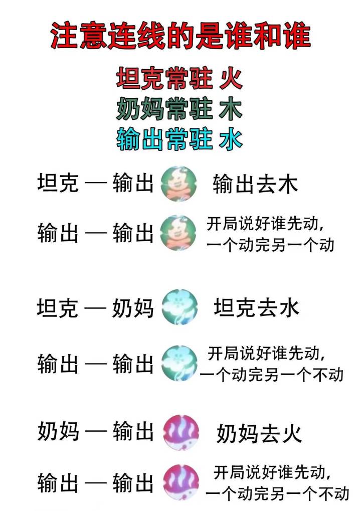 大家都在绿色区域,出蒸汽都要跑,看连线!!连线左边的去左侧红色,右边的去右侧蓝色。出篝火只需要左侧的人去红,出花朵只需要右侧的人去右