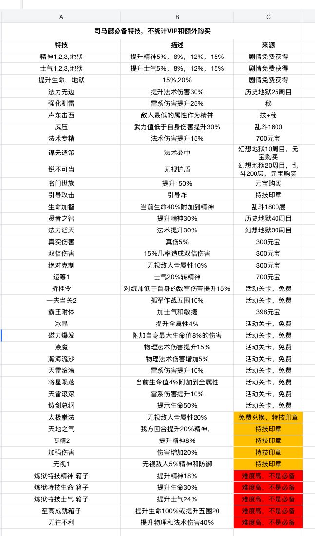 必备特技:锐不可当,谋无遗策,名门士族,生命加智,真实伤害5%,声东击西,强化驯雷,法力无边,威压,只要是提高法术伤害都吃。