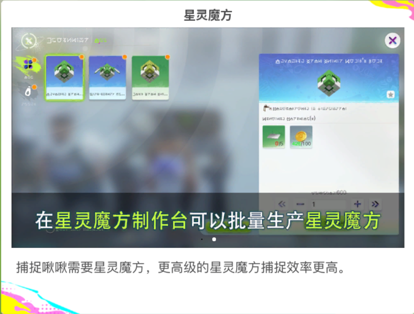 完成主线节点任务:打印进阶星灵魔方,可制作进阶星灵魔方(拥有更高的捕捉概率)