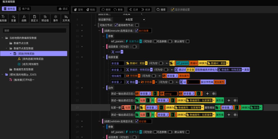 比如增加金钱100 但是如果奖励很多 每个奖励都要单独再拉一个效果节点,再进入填动作就导致非常繁琐,并且数遍表很大。