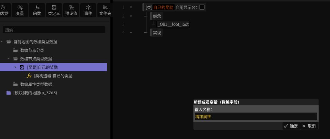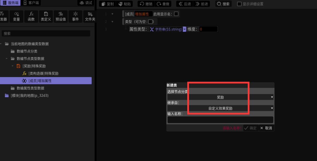 这里可以新建一个奖励类型的自定义数编,继承至奖励分类