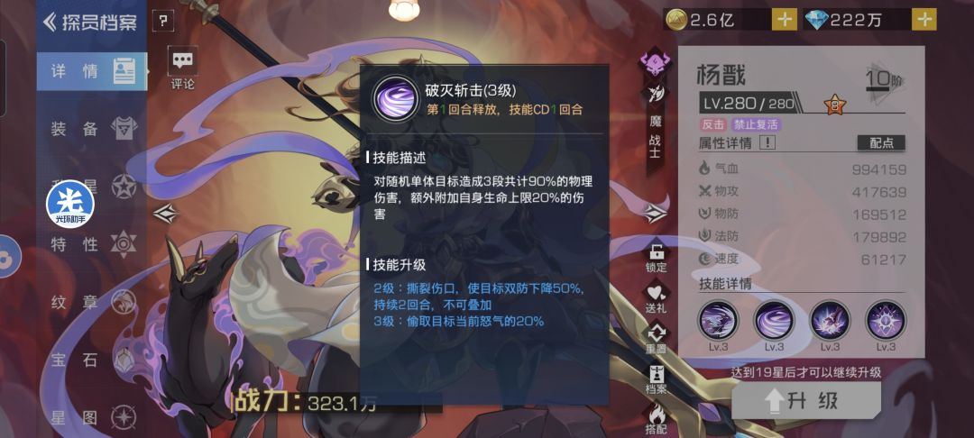 首先,杨戬的一二技能和大招都能连击,触发的追击不能。也就是说在触发连击的情况下,杨戬在第一回合就能给对面的单位挂满十层被动,第二回合就能打出专武的斩杀效果。