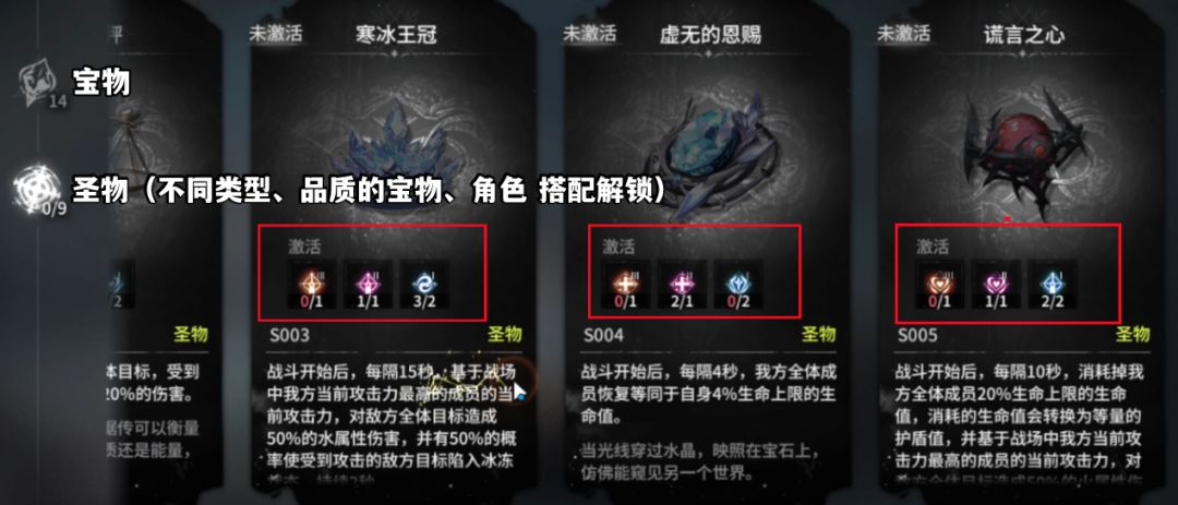 可以用来购买【宝物】,满足一定羁绊可以解锁【圣物】,大幅度提升队伍实力。