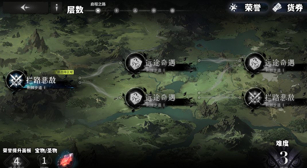 第5层1个BOSS,对输出有较高的要求。需要在前5层的事件中,获得【荣誉】【货劵】两种不同货币来提升实力。