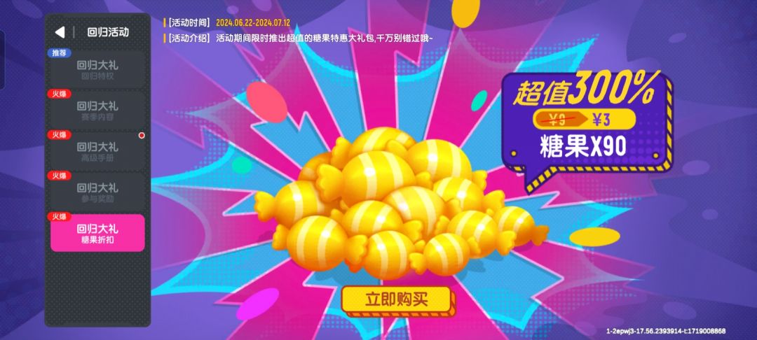回归后不用担心没糖果,官方大大都准备好了糖果折扣,以最优惠的价格拿最多的糖果。