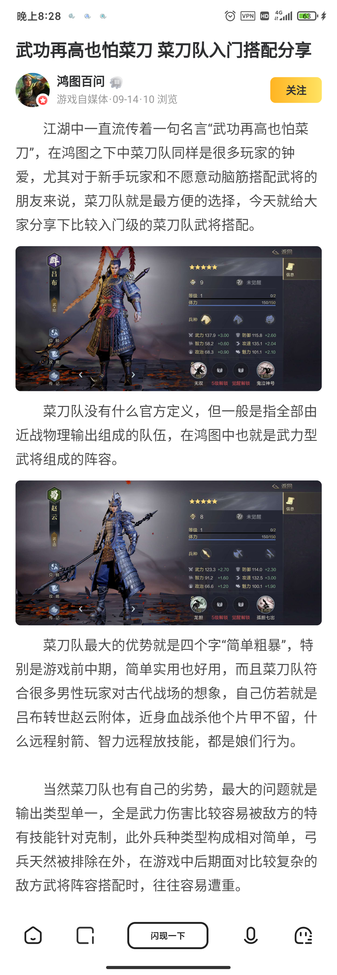 在鸿图之下中,武力型武将组成的阵容被称为菜刀队。很多像我这样的新手玩家都很中意这个阵容搭配,简单实用好上手,那么如何搭配呢,一起来看一看攻略吧~